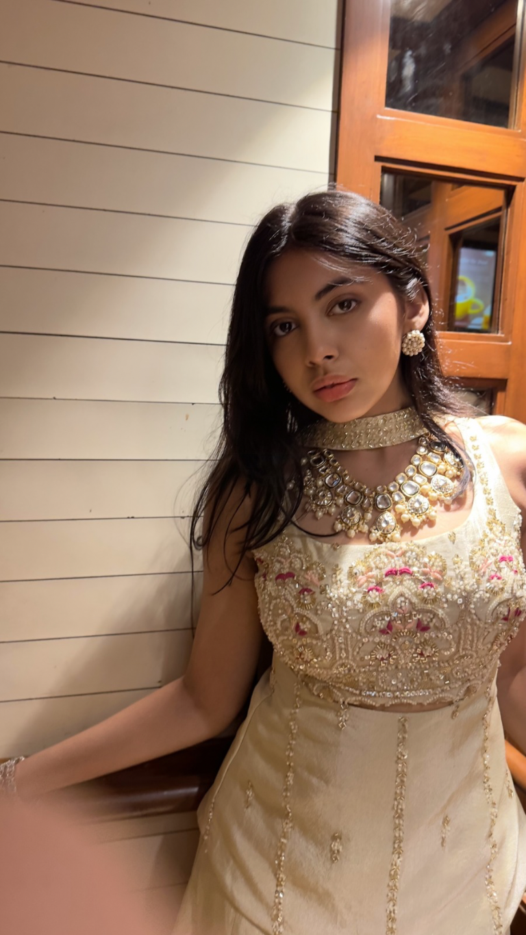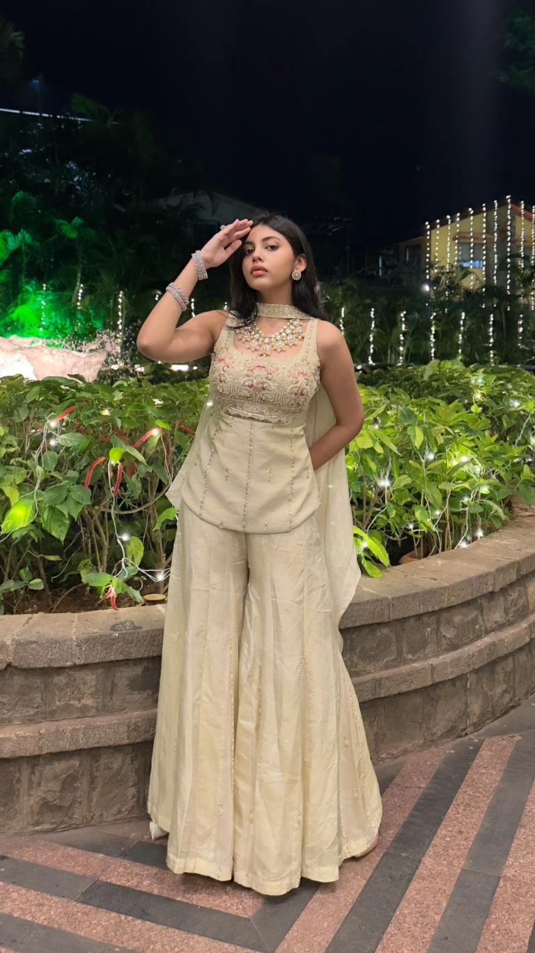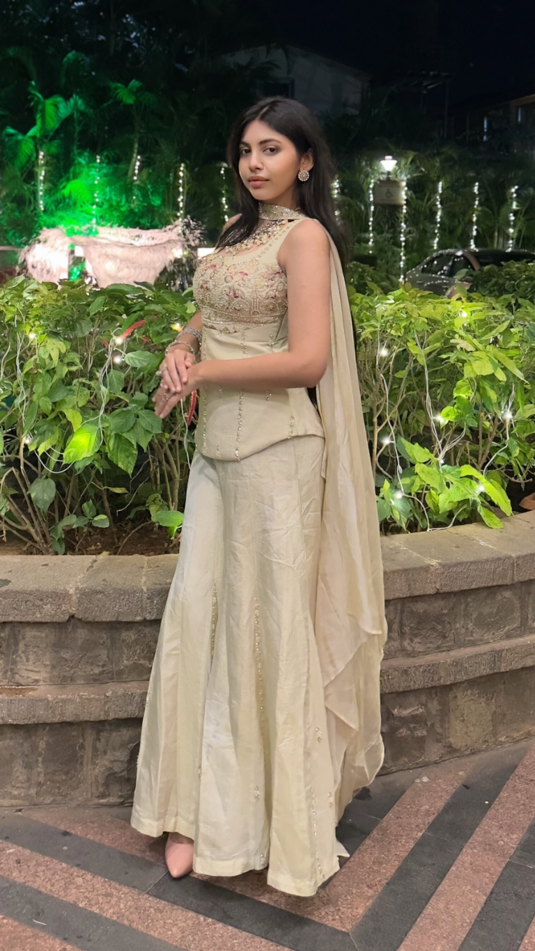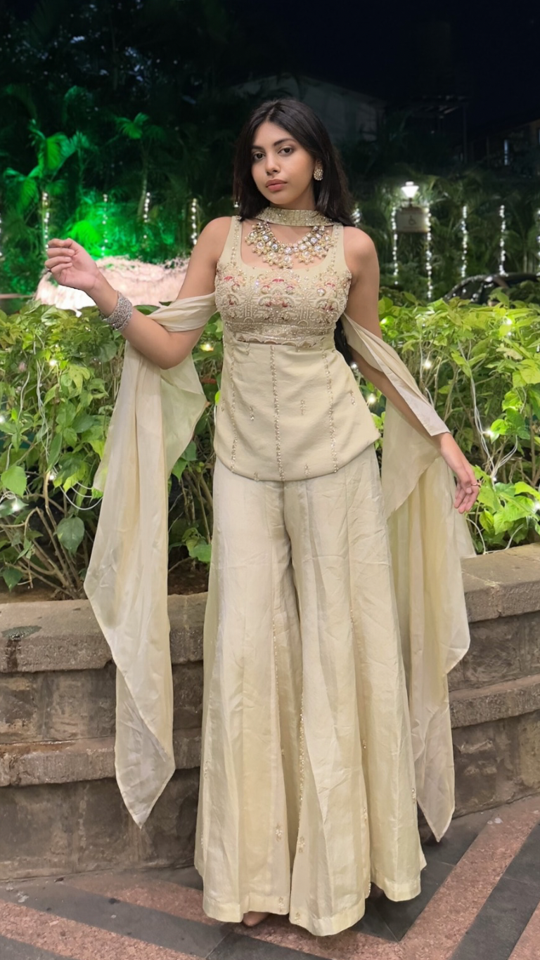 This dreamy golden corset set is all about that glam vibe — structured fit, flowy palazzos, and a dupatta that moves like magic. Perfect for when you wanna serve ethnic elegance with a modern edge. From wedding nights to festive selfies — this outfit is your spotlight moment ✨